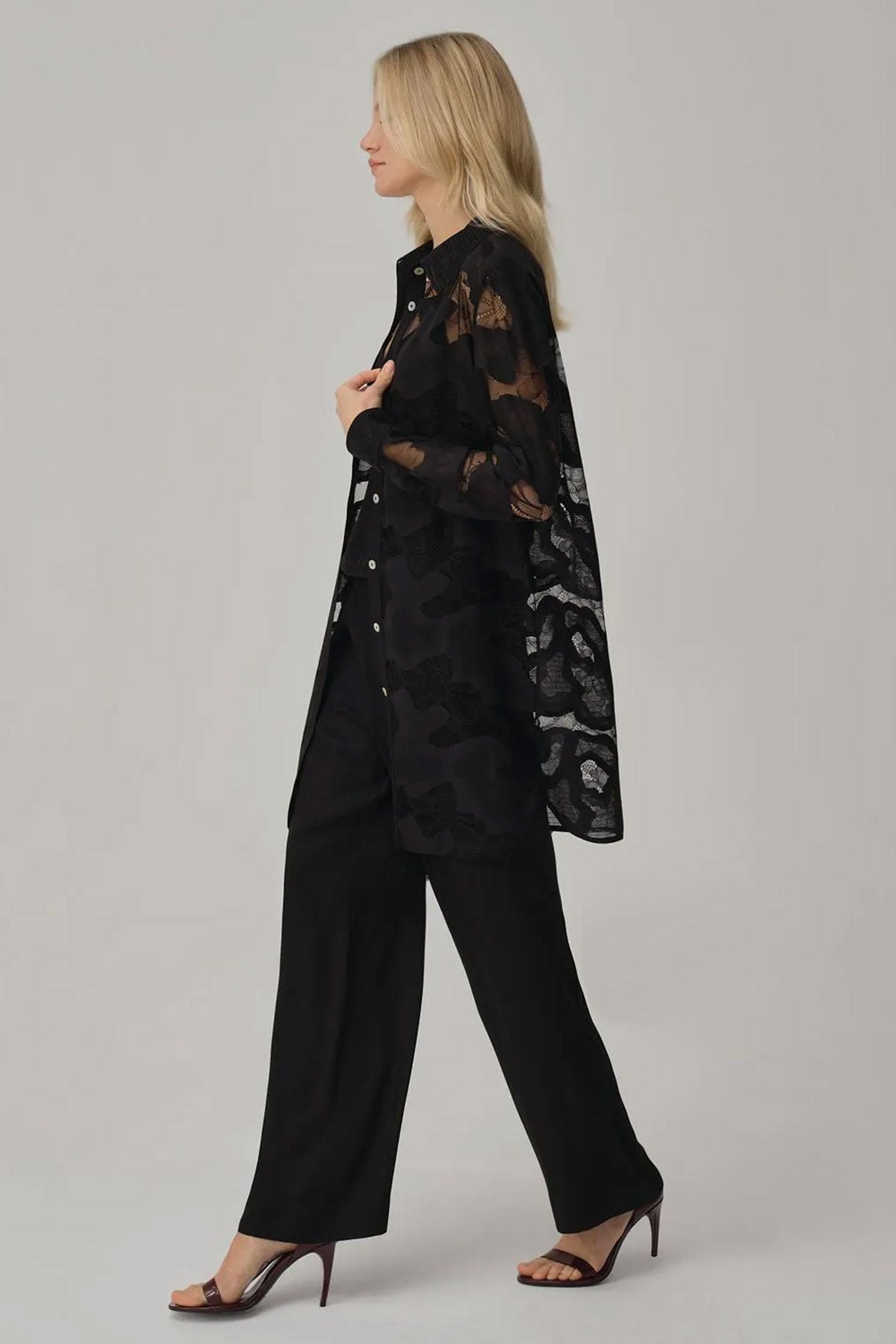 Pierre Cardin Kadın Gömlek Yaka 3'lü Pijama Takımı Transparan İp Askılı