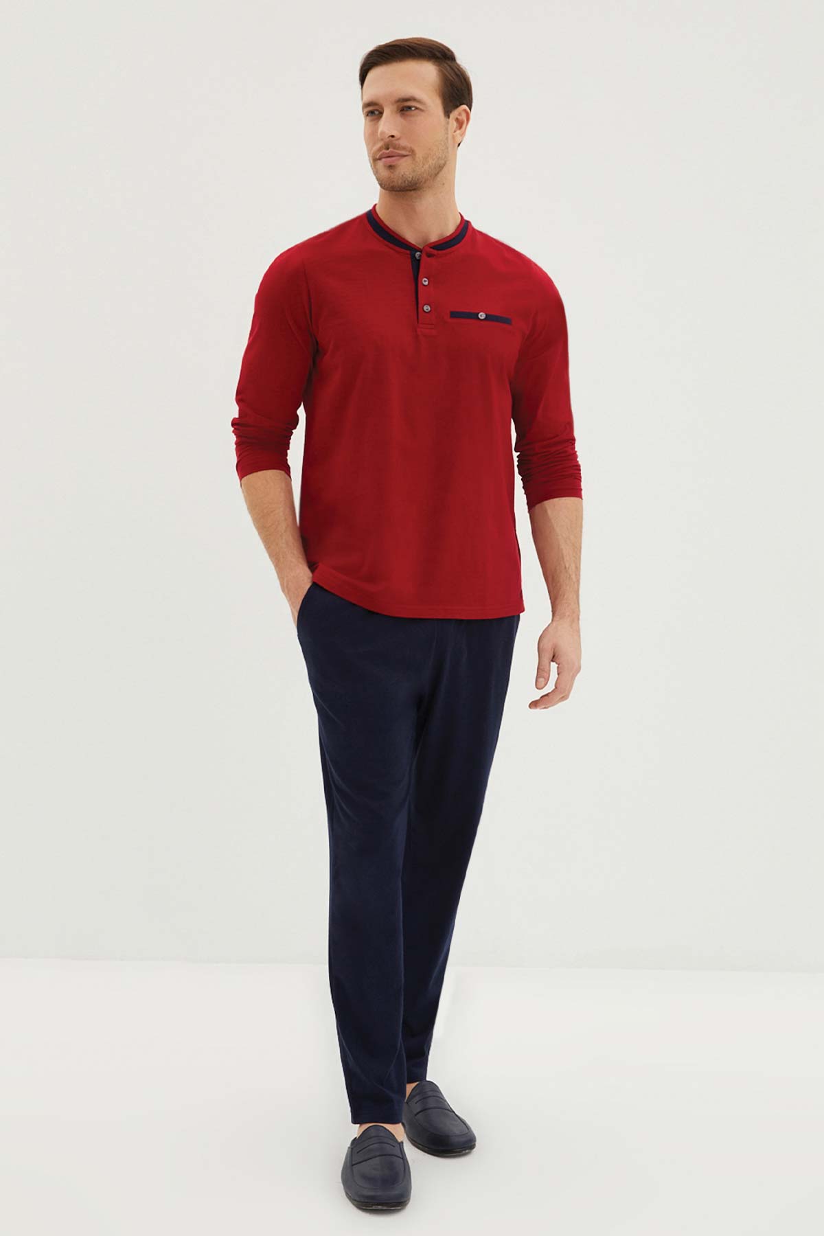 Kiğılı Erkek Pijama Takımı 3 Düğmeli 3'lü Rob Takım Penye
