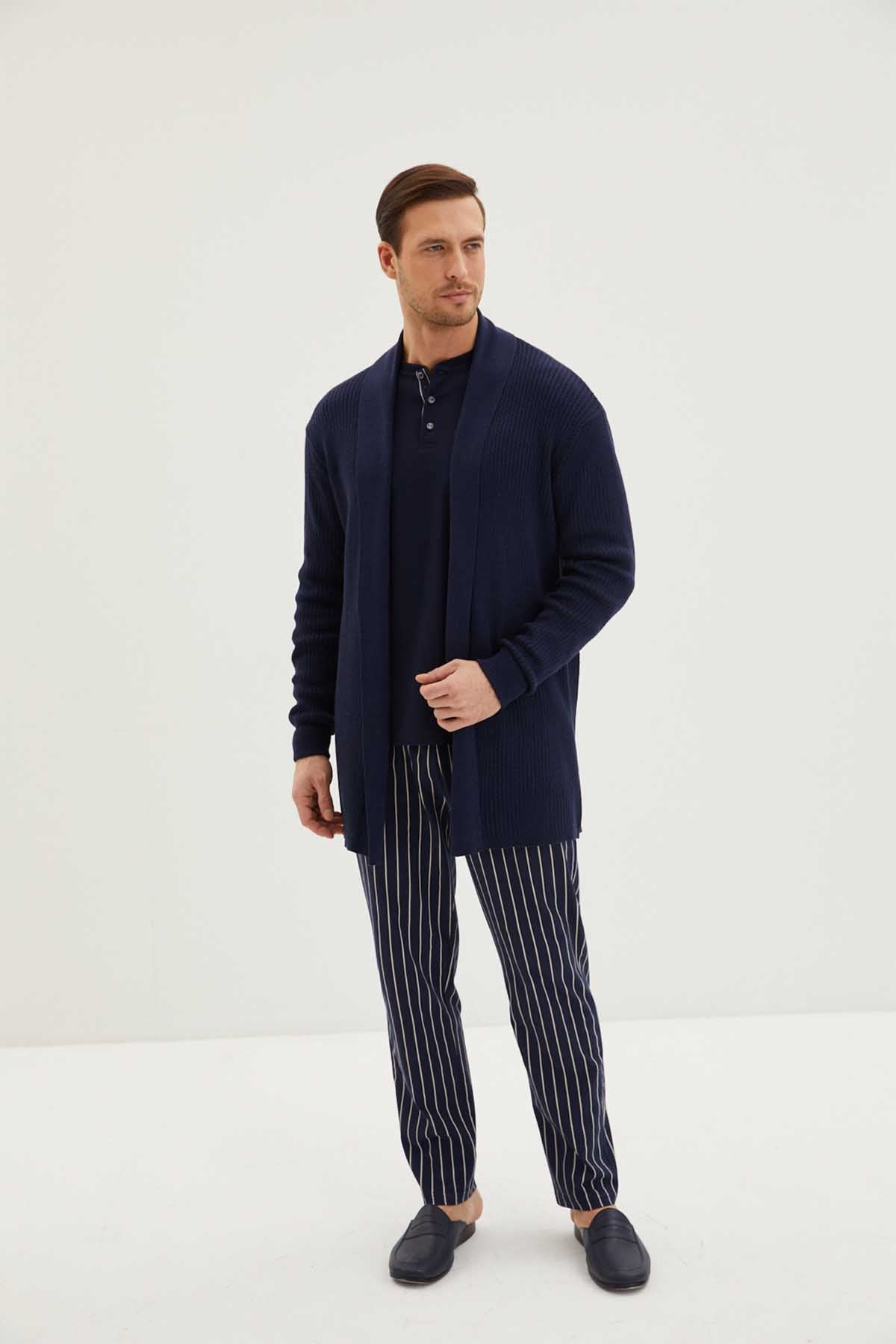 Kiğılı Erkek Pijama Takımı 3 Düğmeli Pijaması Çizgili 3'lü Rob Takım Penye