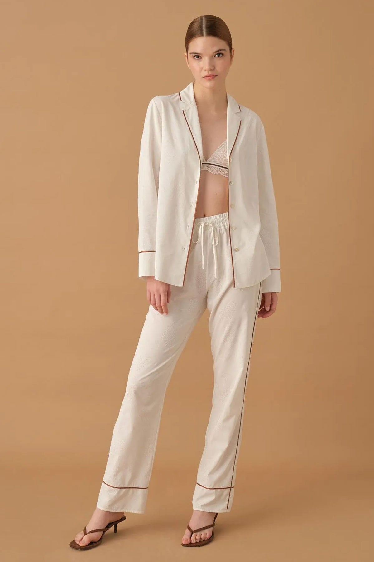 Pierre Cardin Kadın Gömlek Yaka 3'lü Pijama Takımı Büstiyerli Dantelli