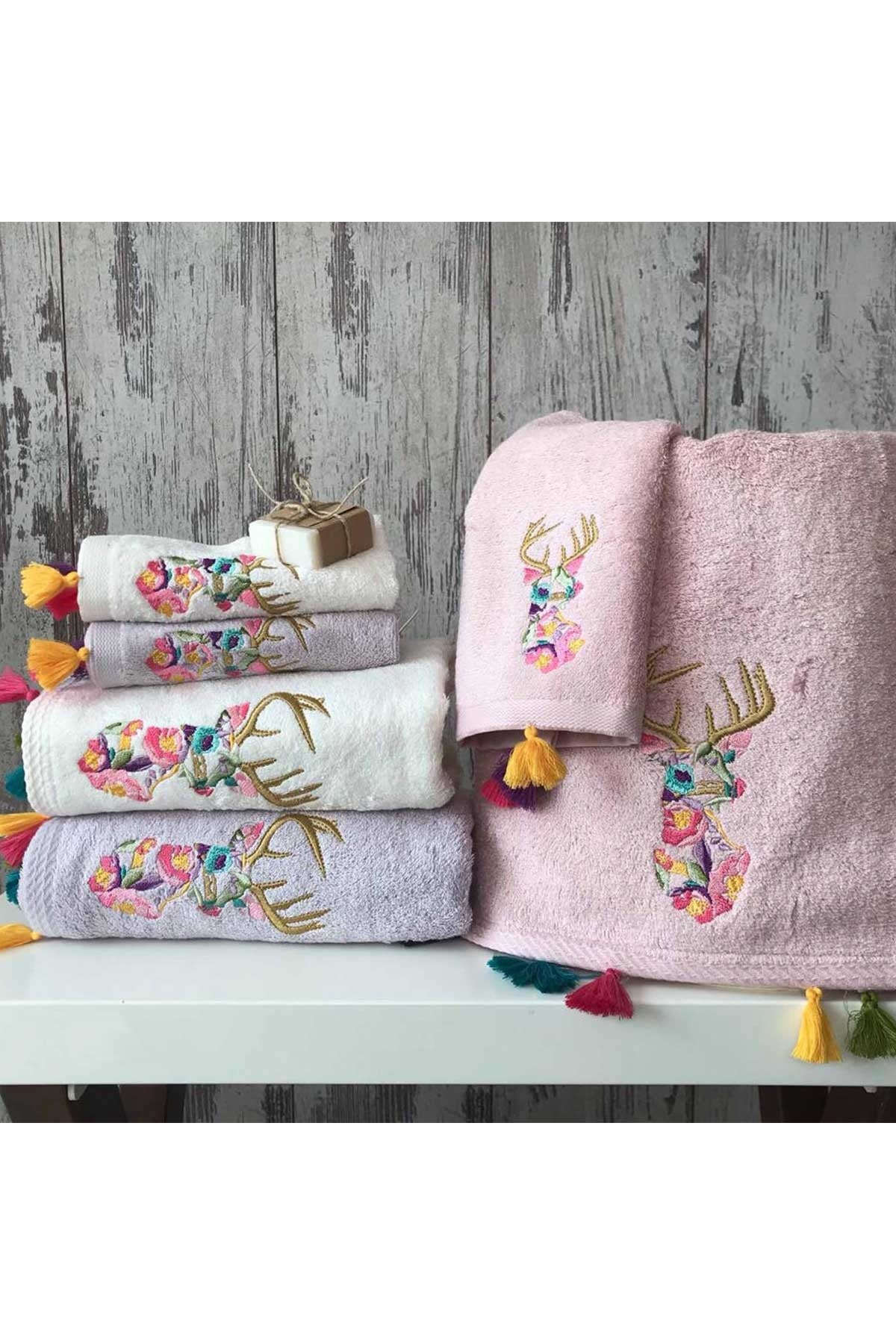 Maribor El-Yüz Havlusu 3D Nakışlı Geyik Bambu 50x90