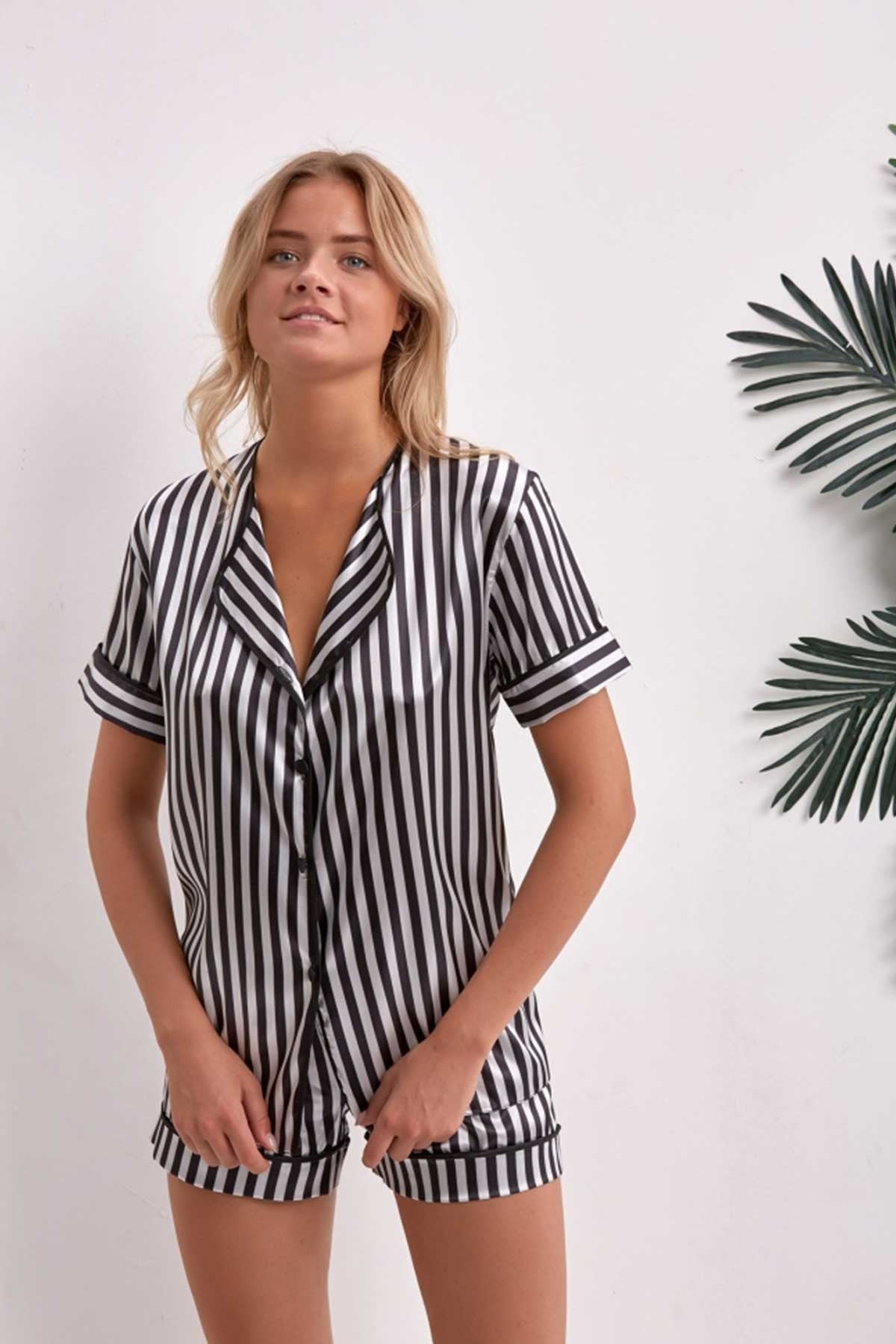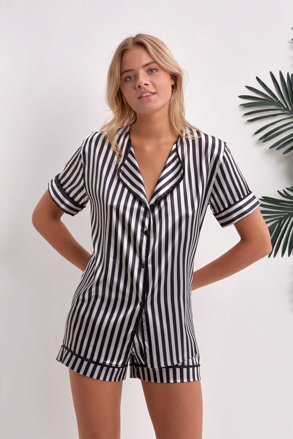 Nbb Kadın Saten Şortlu Gömlek Yaka Pijama