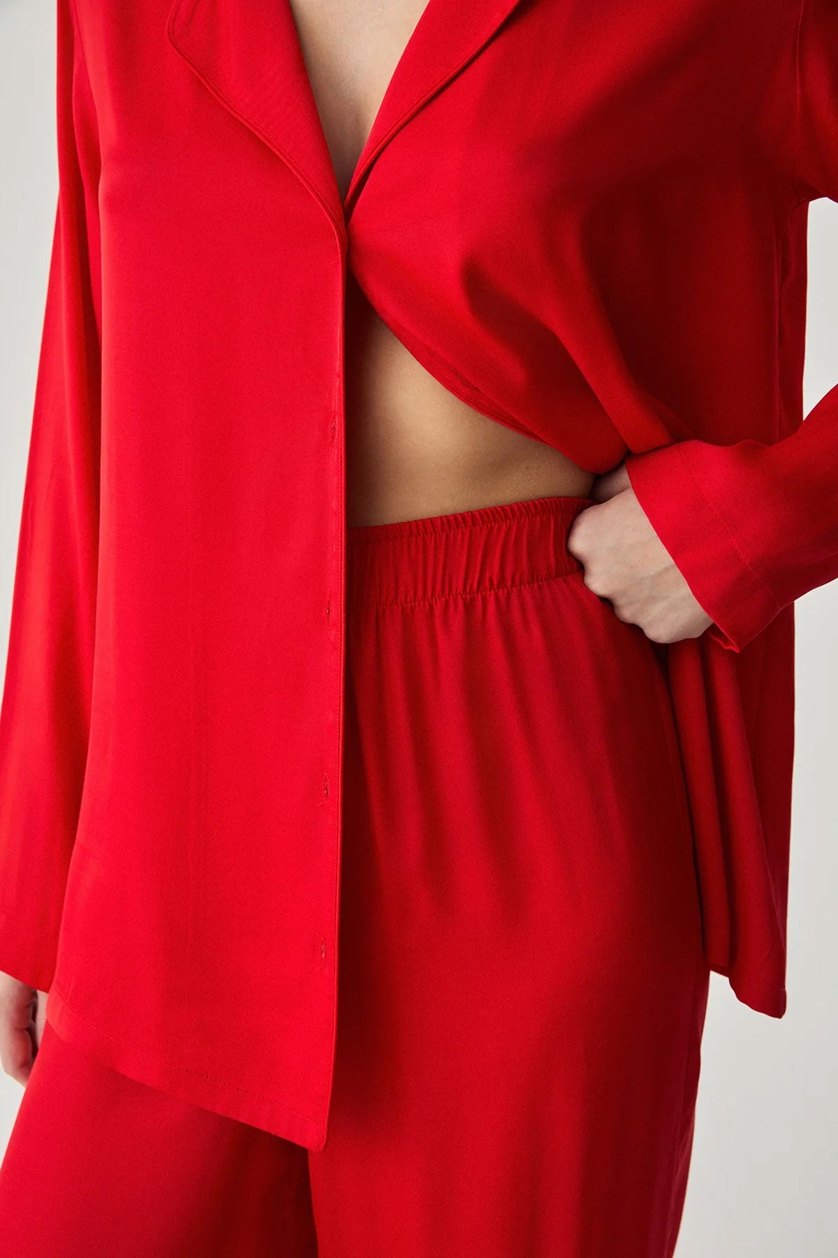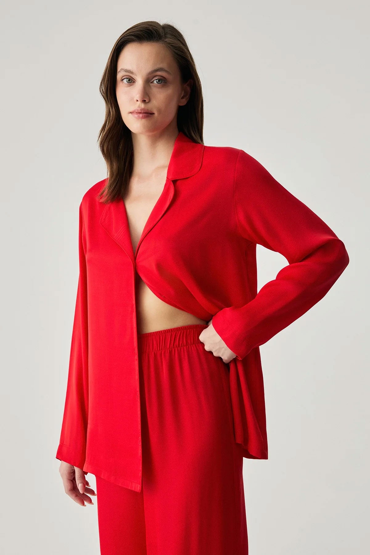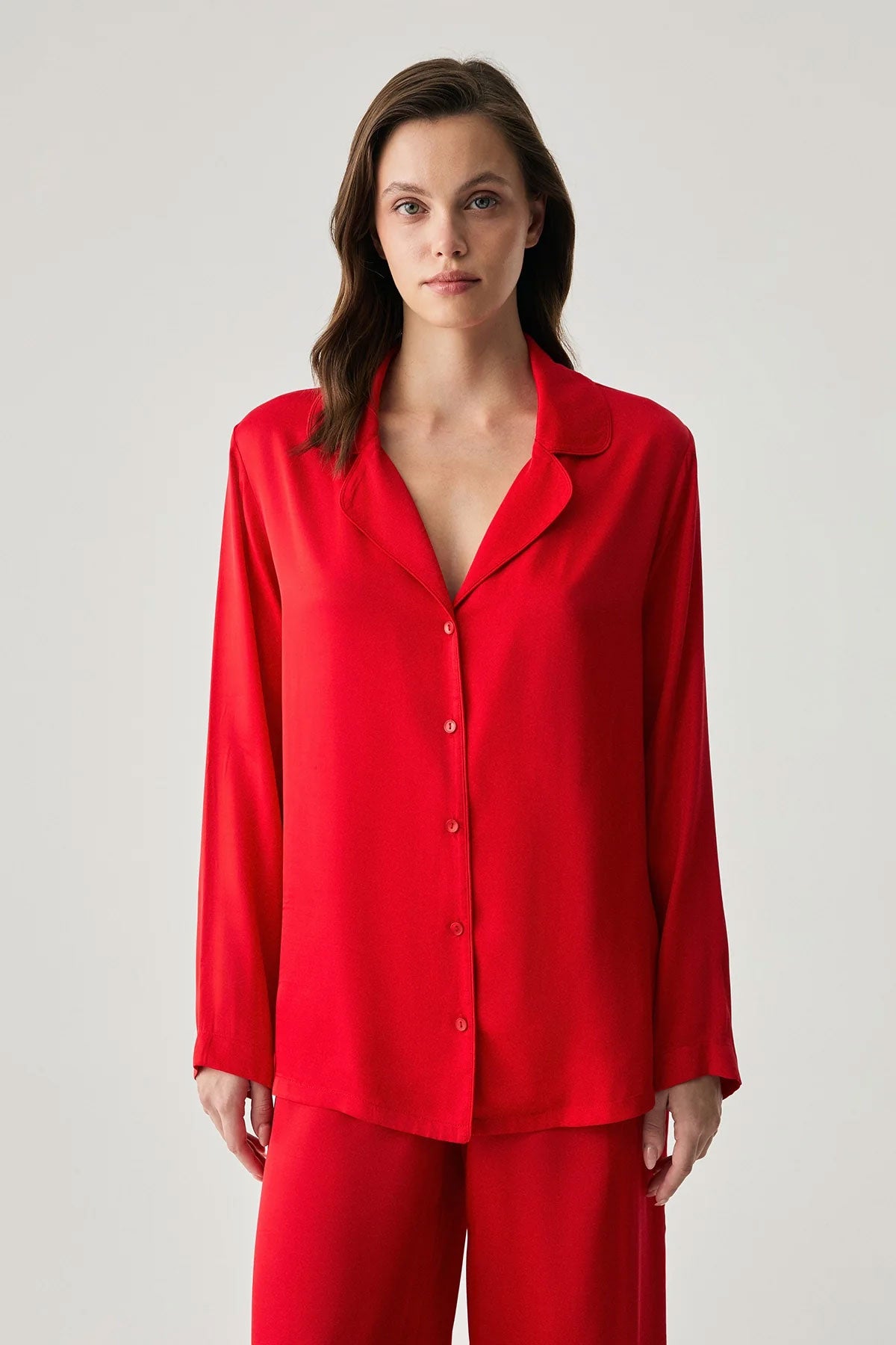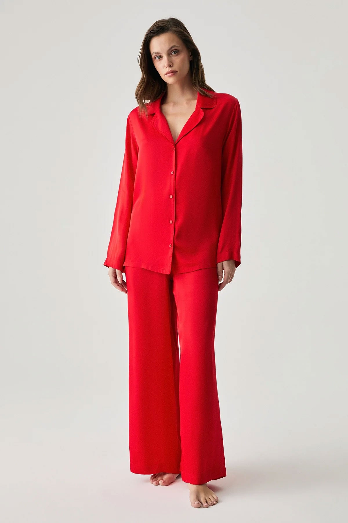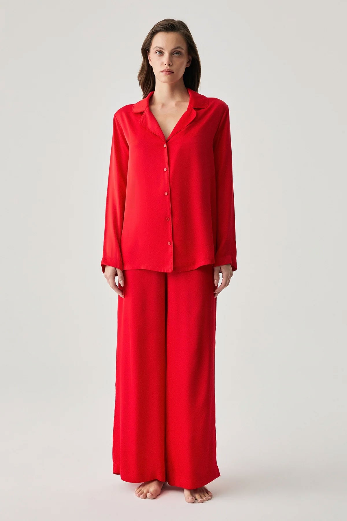 Penyemood Kadın Pijama Takımı Gömlek Yaka Bol Paça Viskon