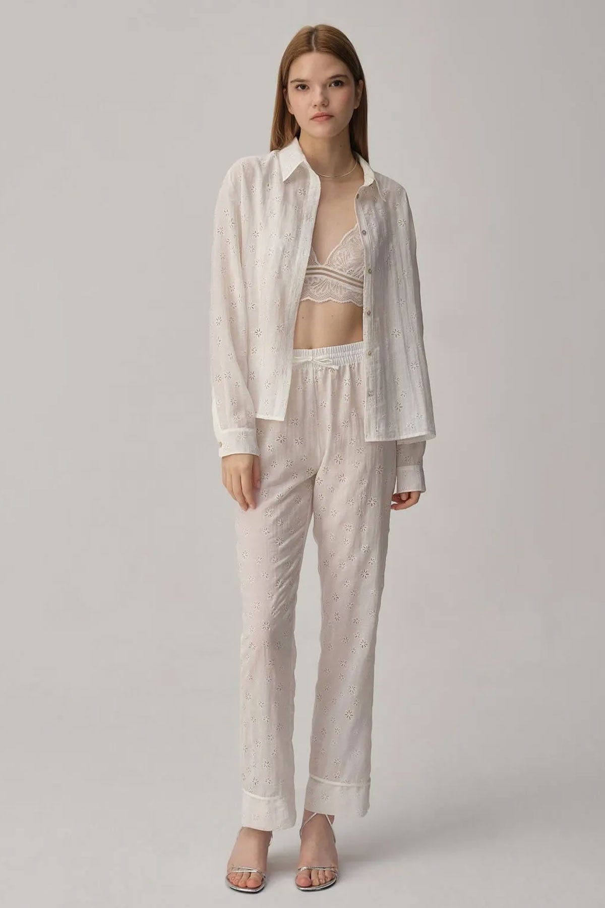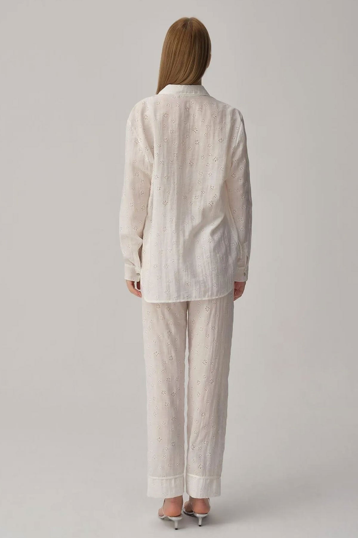 Pierre Cardin Kadın Gömlek Yaka 3'lü Pijama Takımı Büstiyerli Dantelli