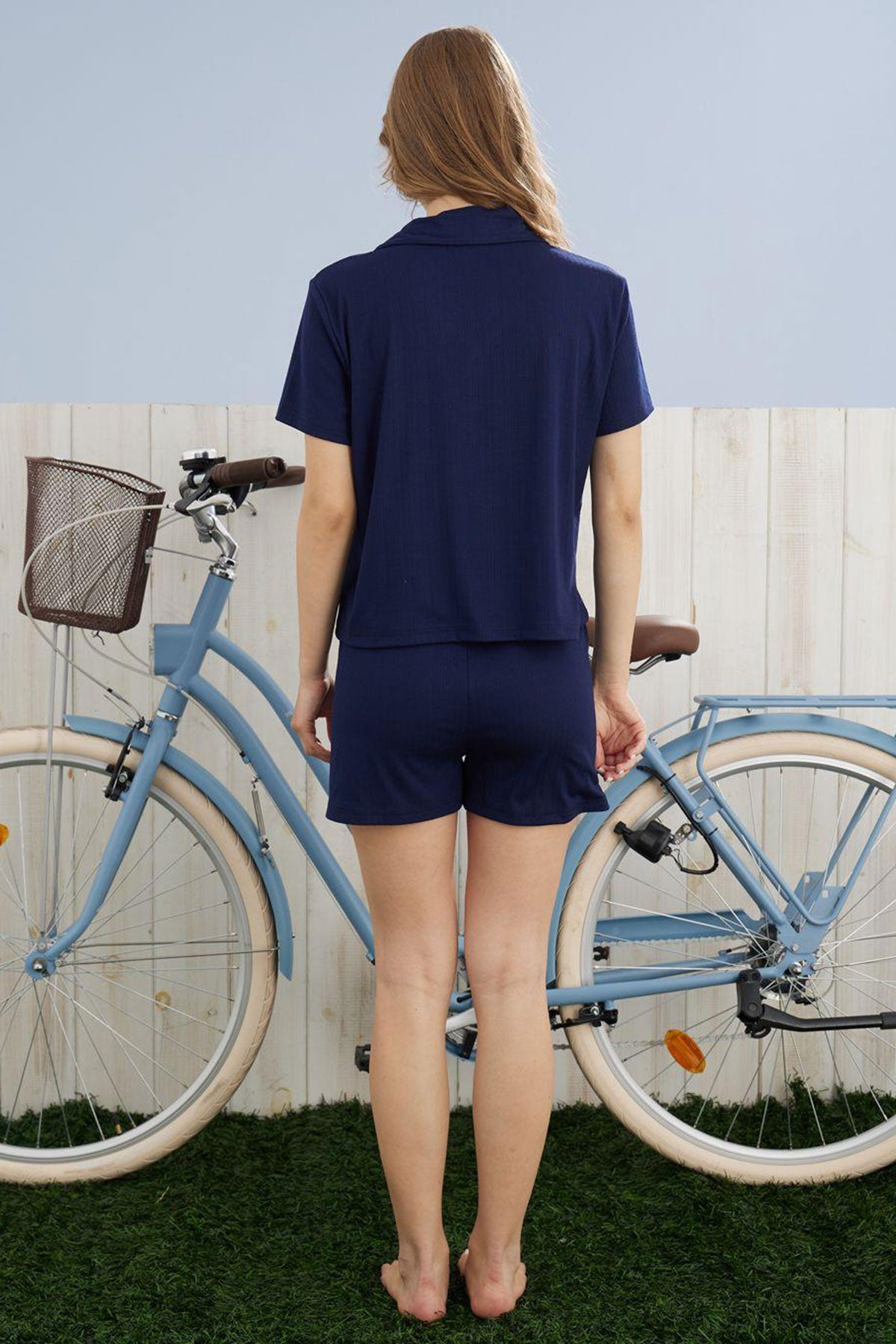 Pijamoni Kadın Şortlu Takım Gömlek Yaka Kısa Kollu Cepli Dublin