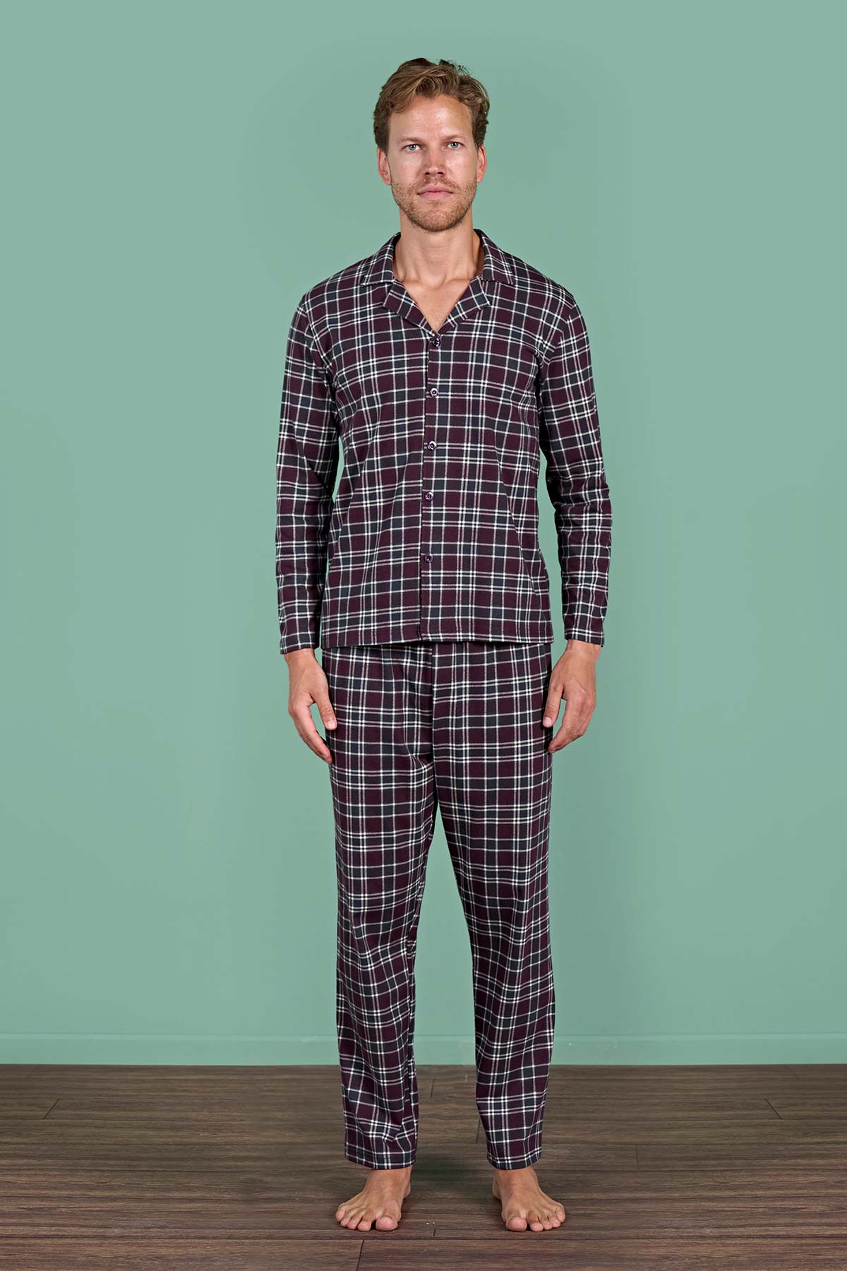 Pınarca Erkek Pijama Takımı Uzun Kollu Gömlek Yaka Ekoseli Pamuklu Eşli