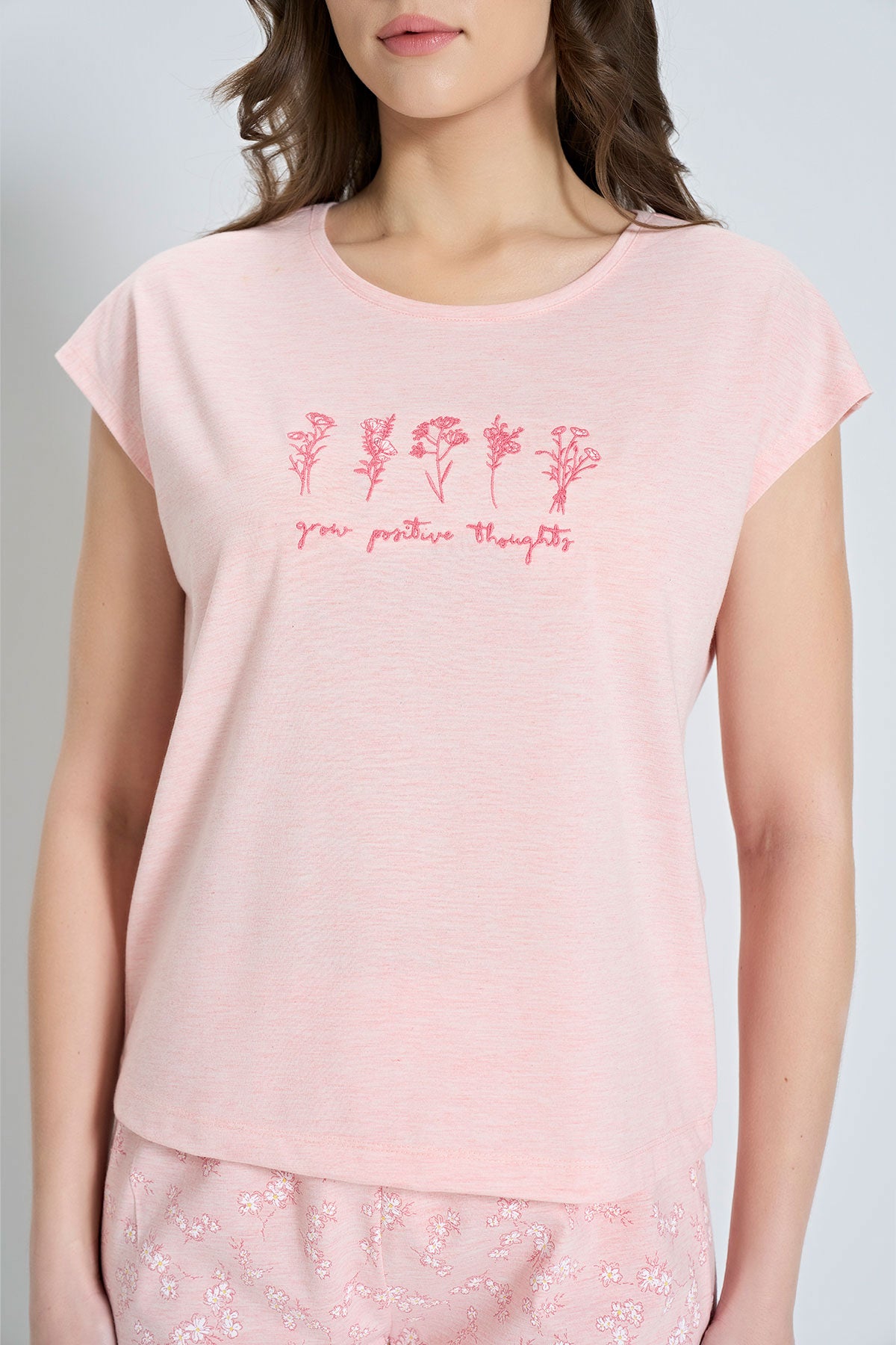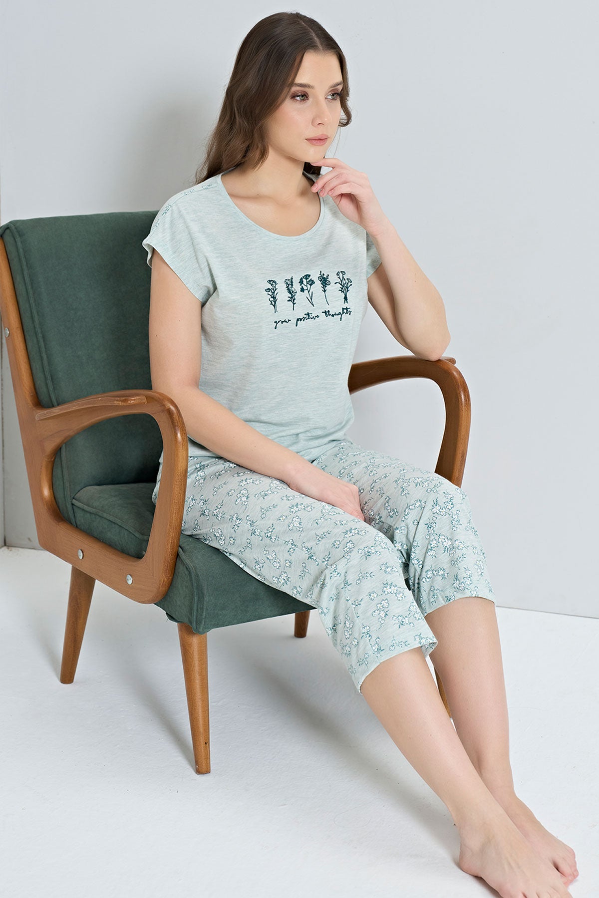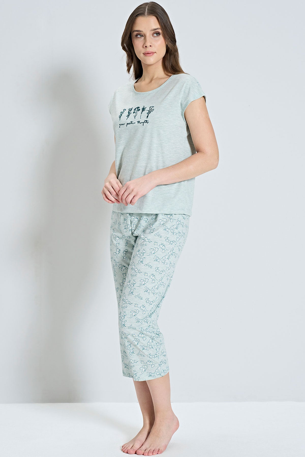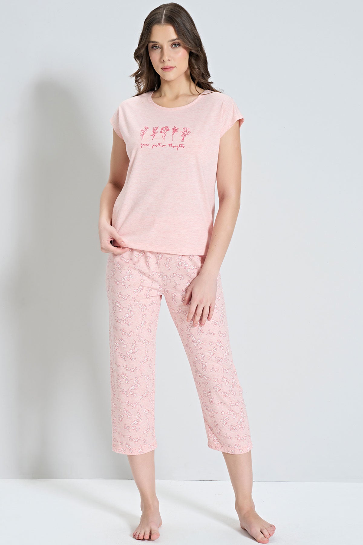 Pınarca Kadın Kapri Takımı Kısa Kollu Çiçek Desenli