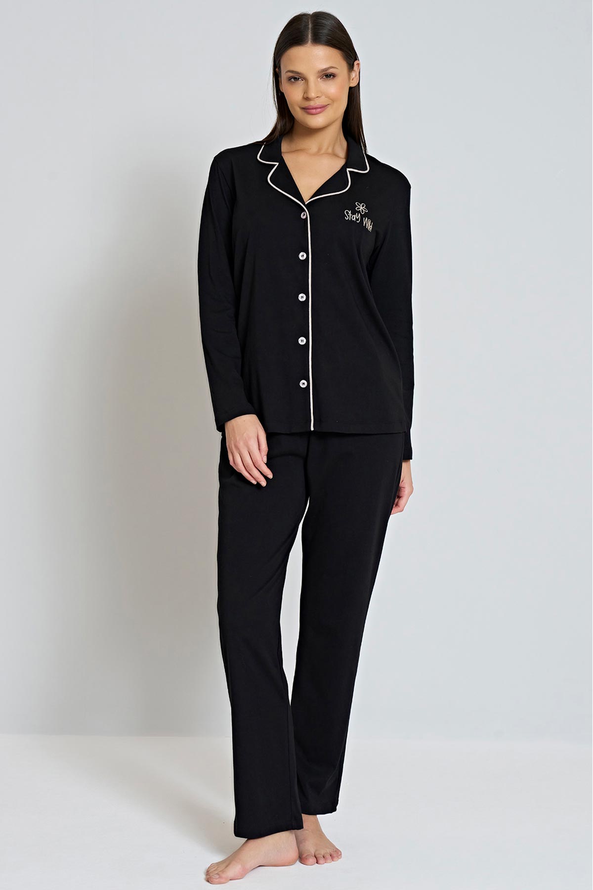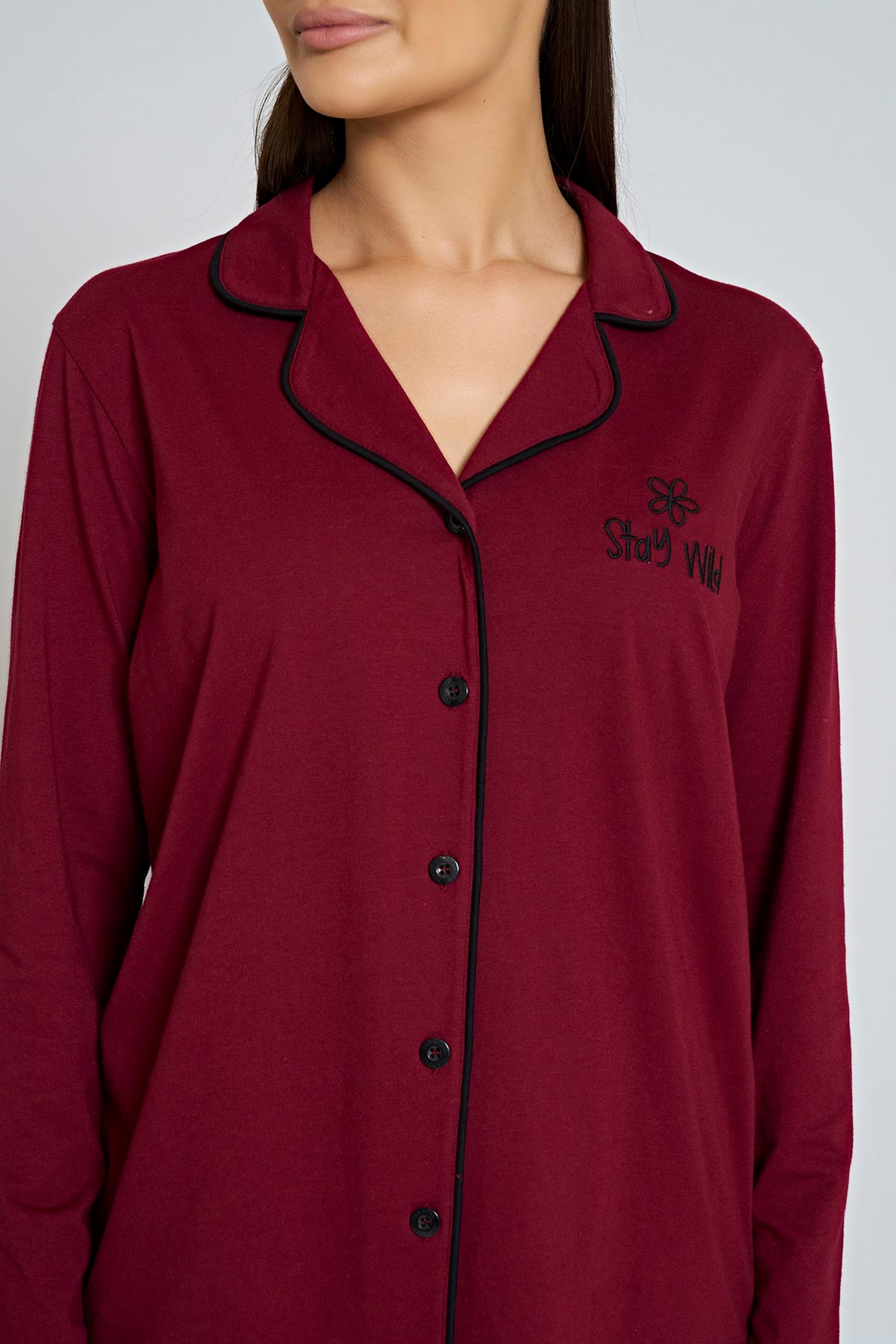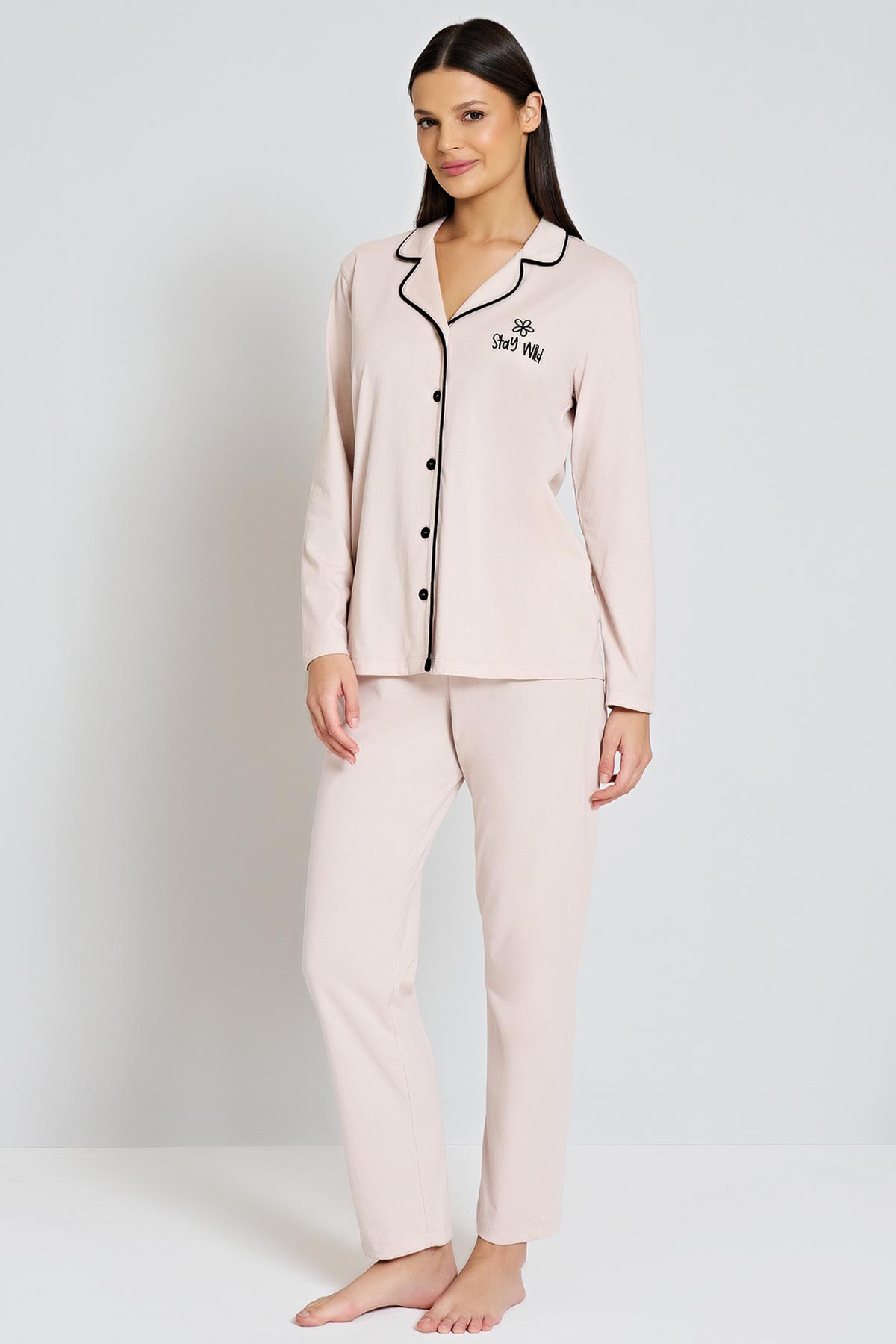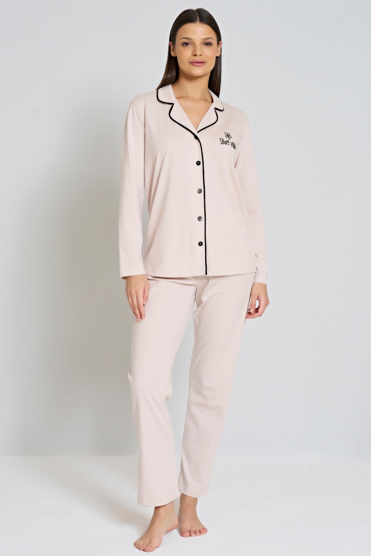 Pınarca Kadın Pijama Takımı Gömlek Yaka Uzun Kollu Büyük Beden