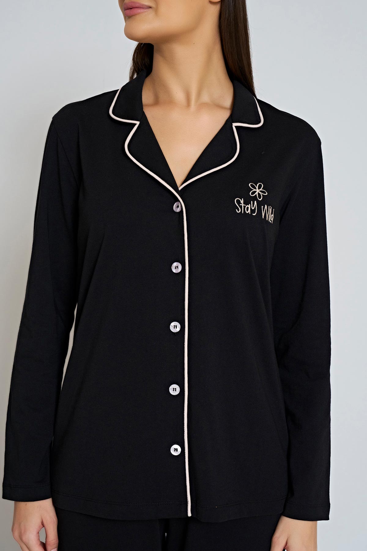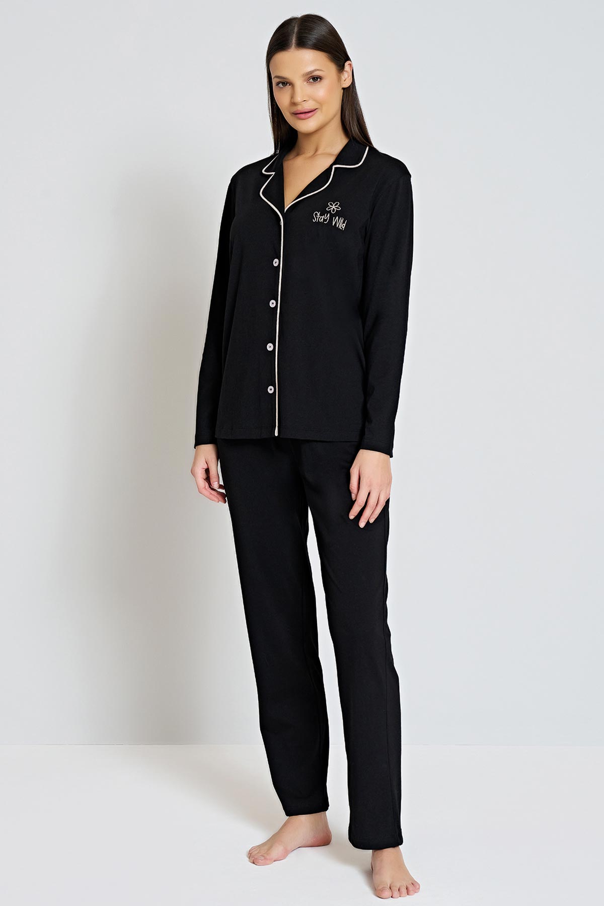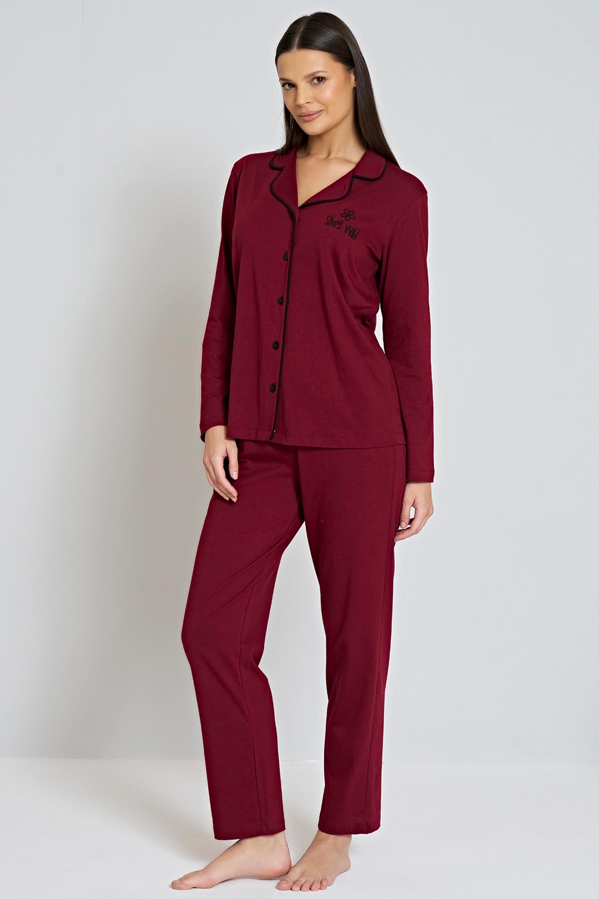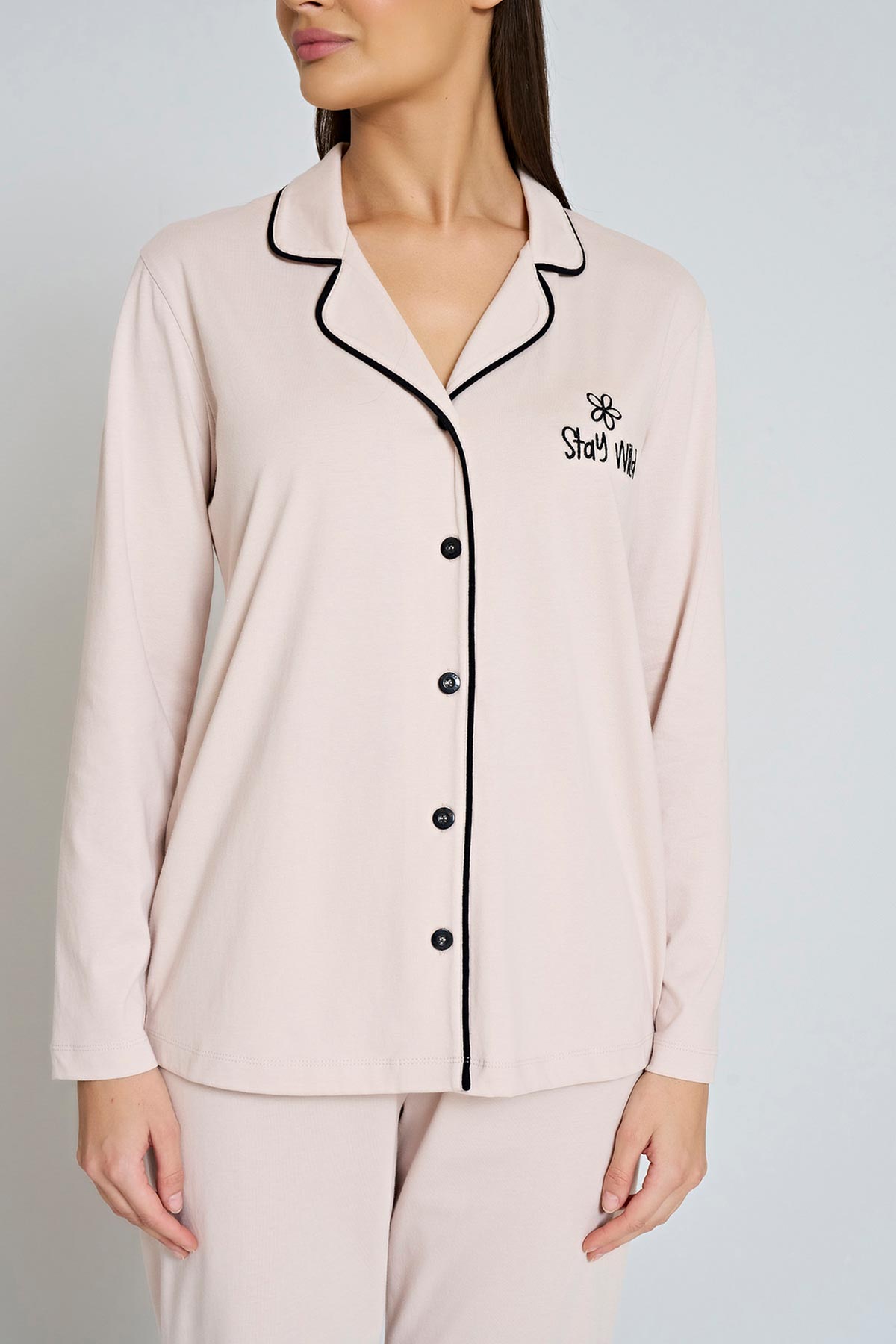 Pınarca Kadın Pijama Takımı Gömlek Yaka Uzun Kollu Büyük Beden