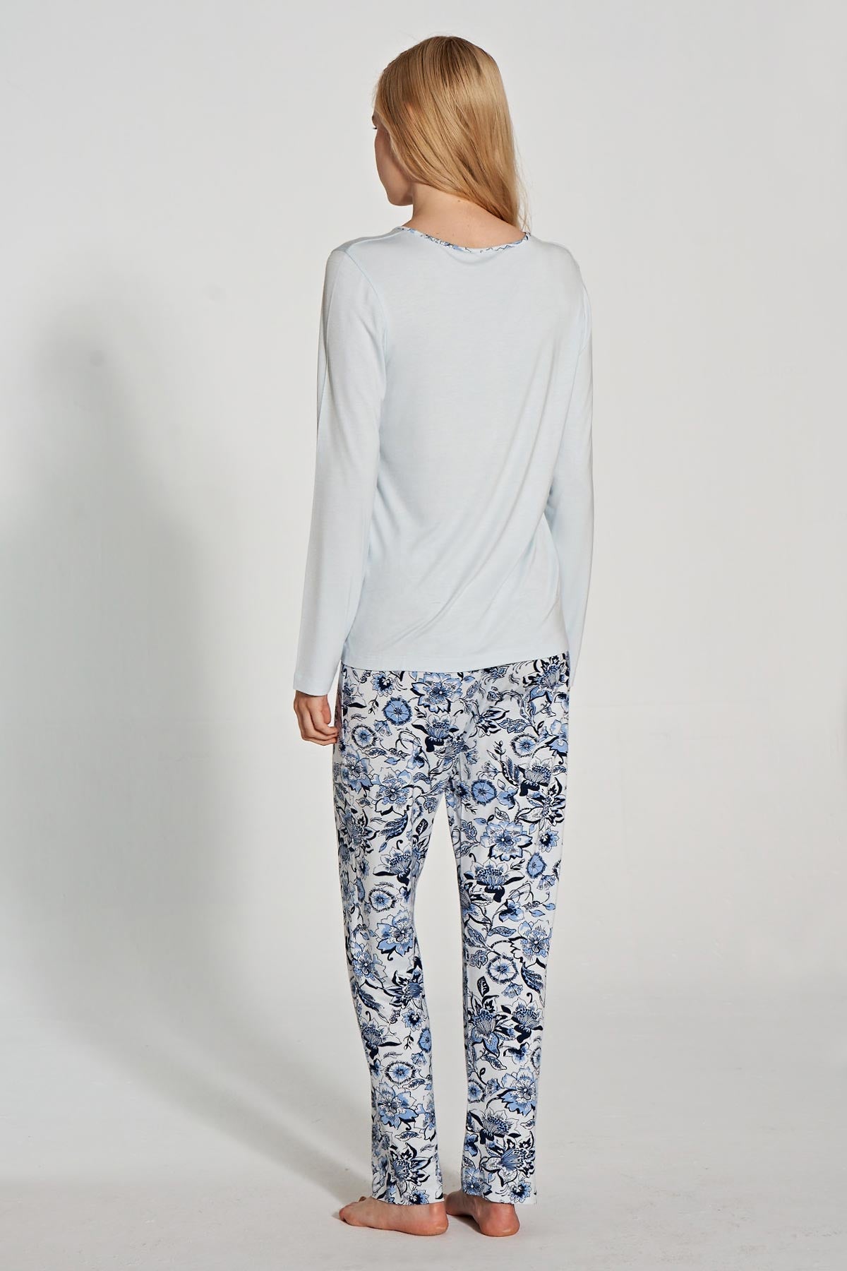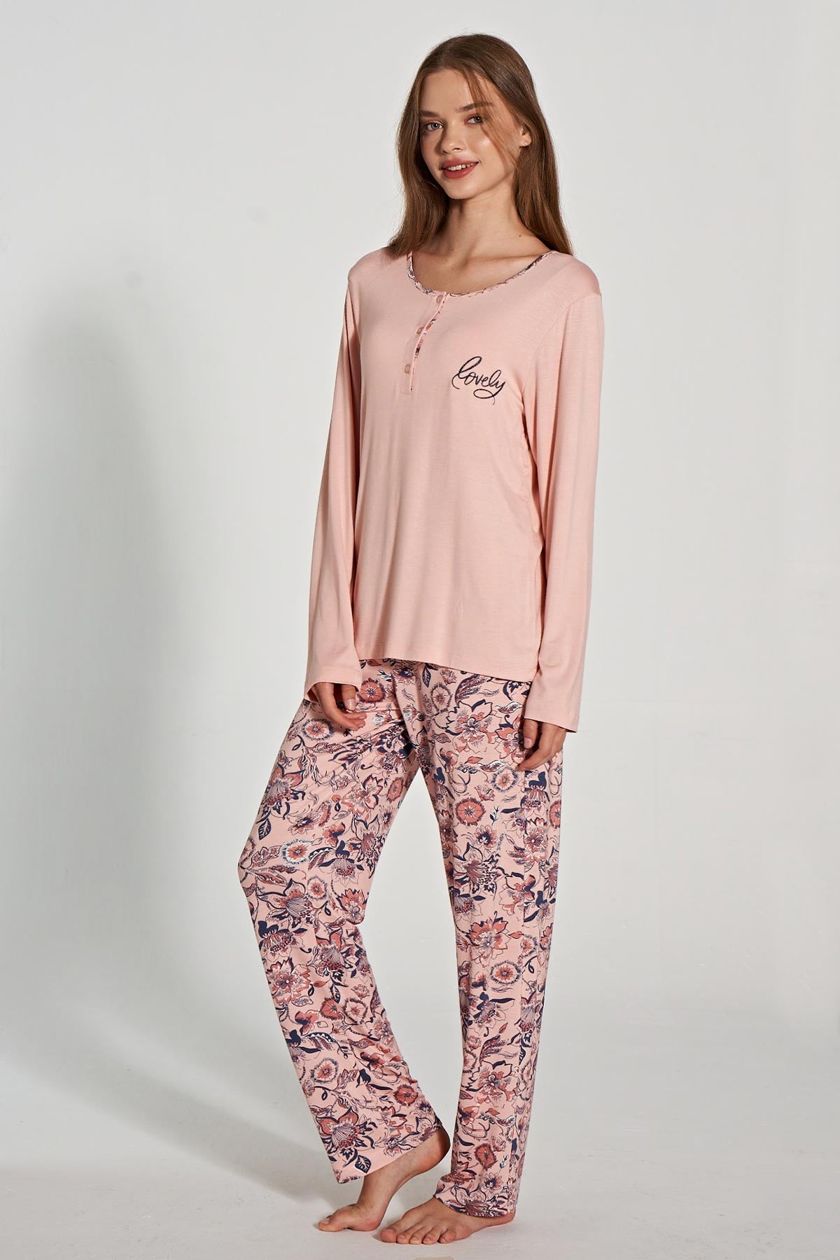 Pınarca Kadın Pijama Takımı Uzun Kollu Düğmeli Bisiklet Yaka