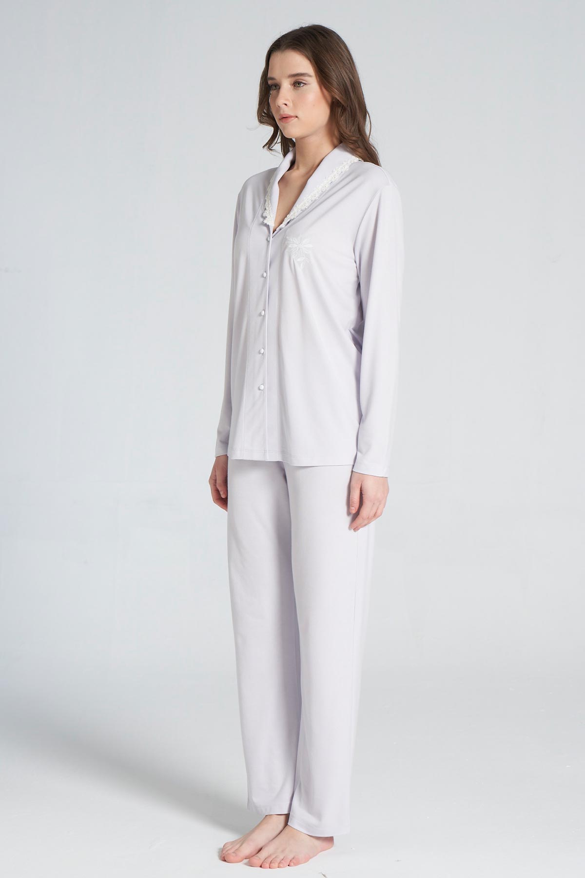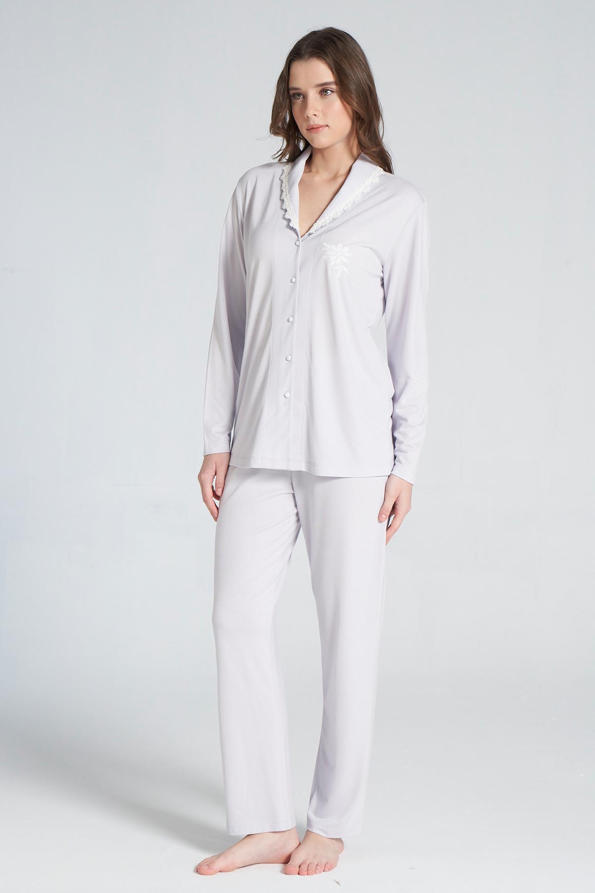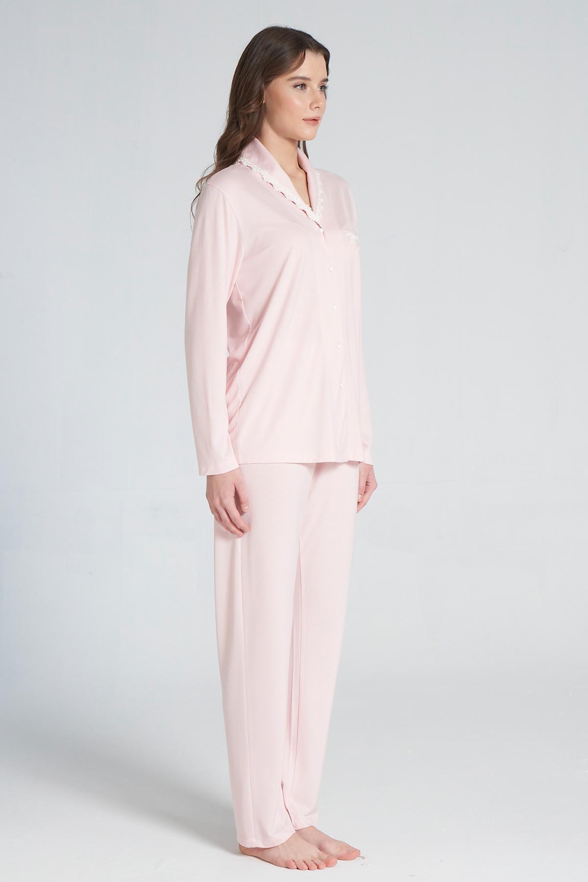 Pınarca Kadın Pijama Takımı Uzun Kollu Gömlek Yaka Pamuklu
