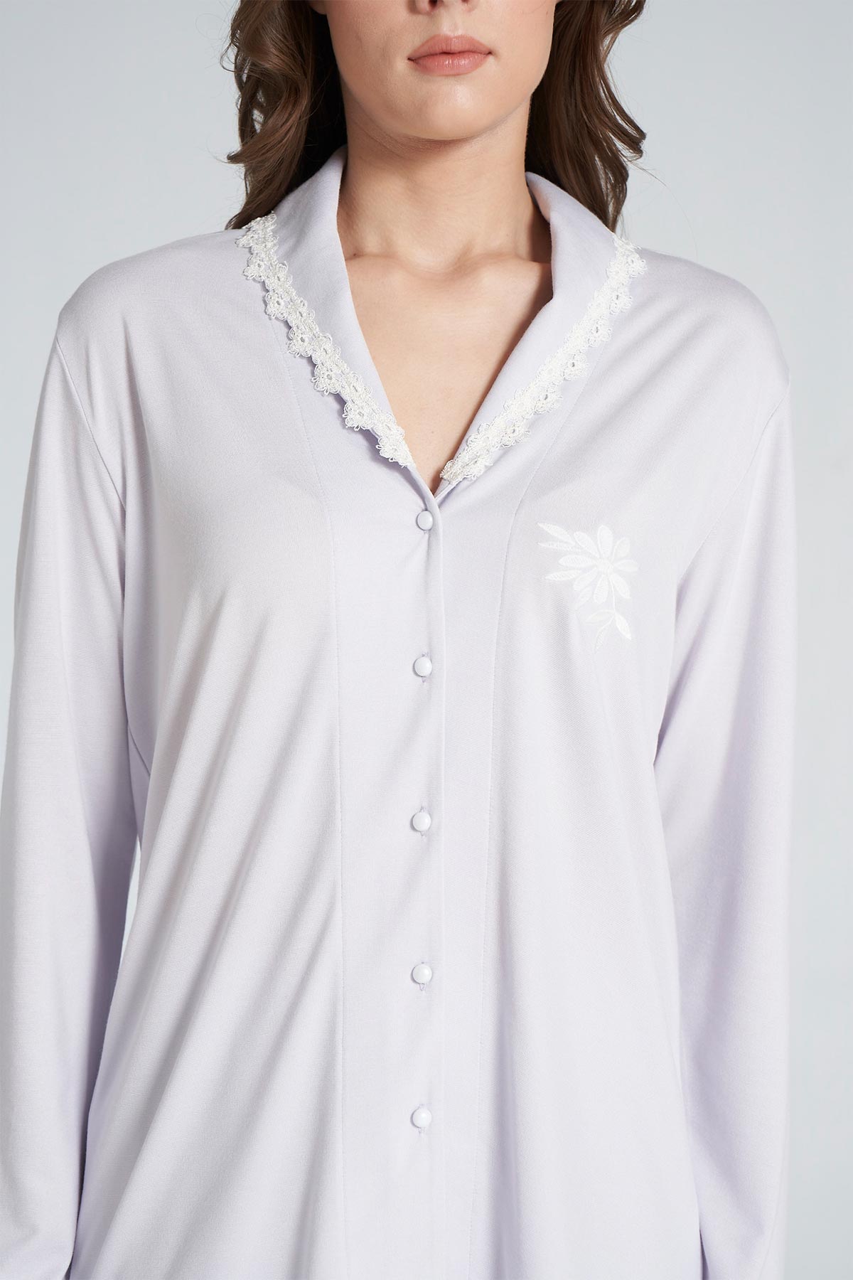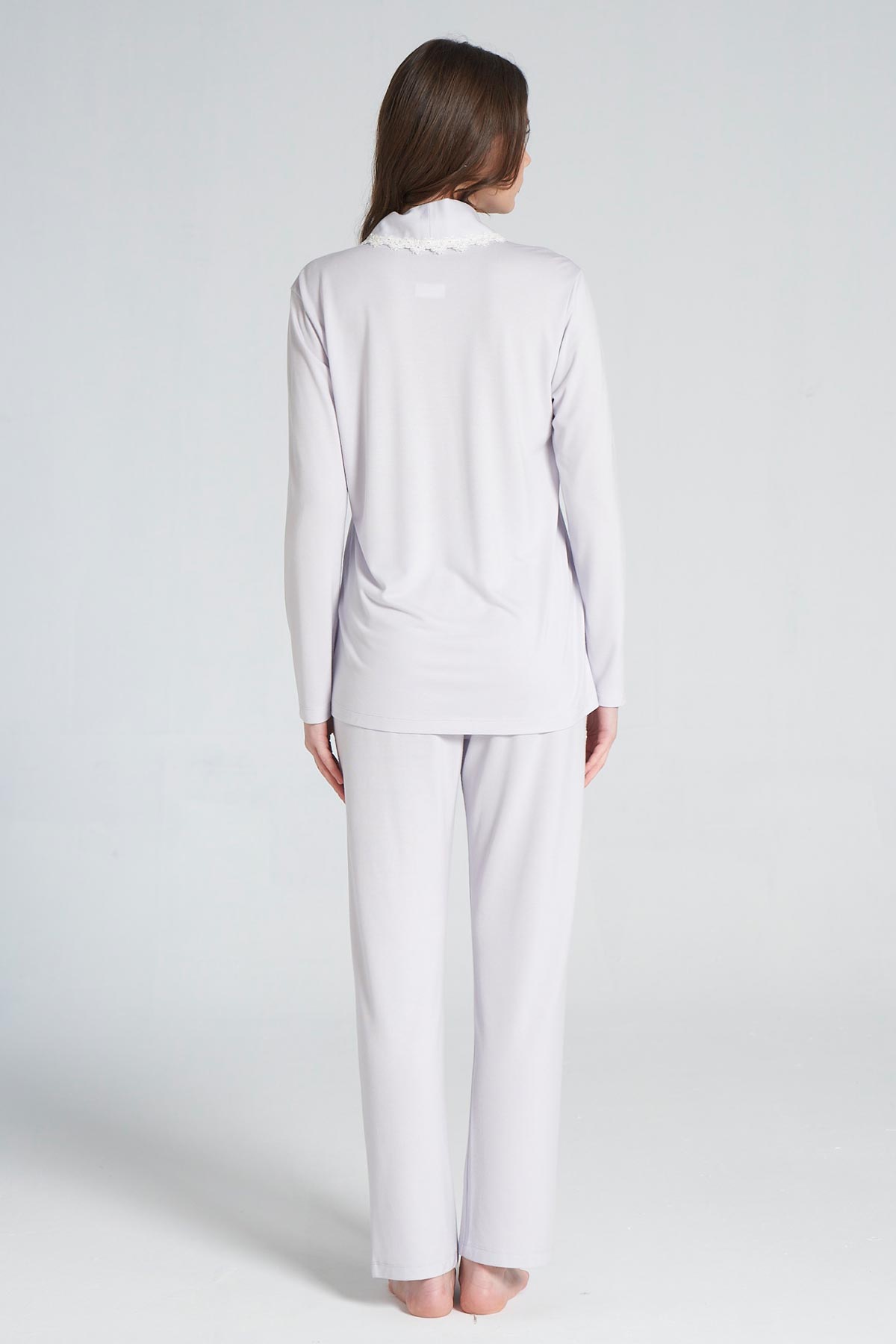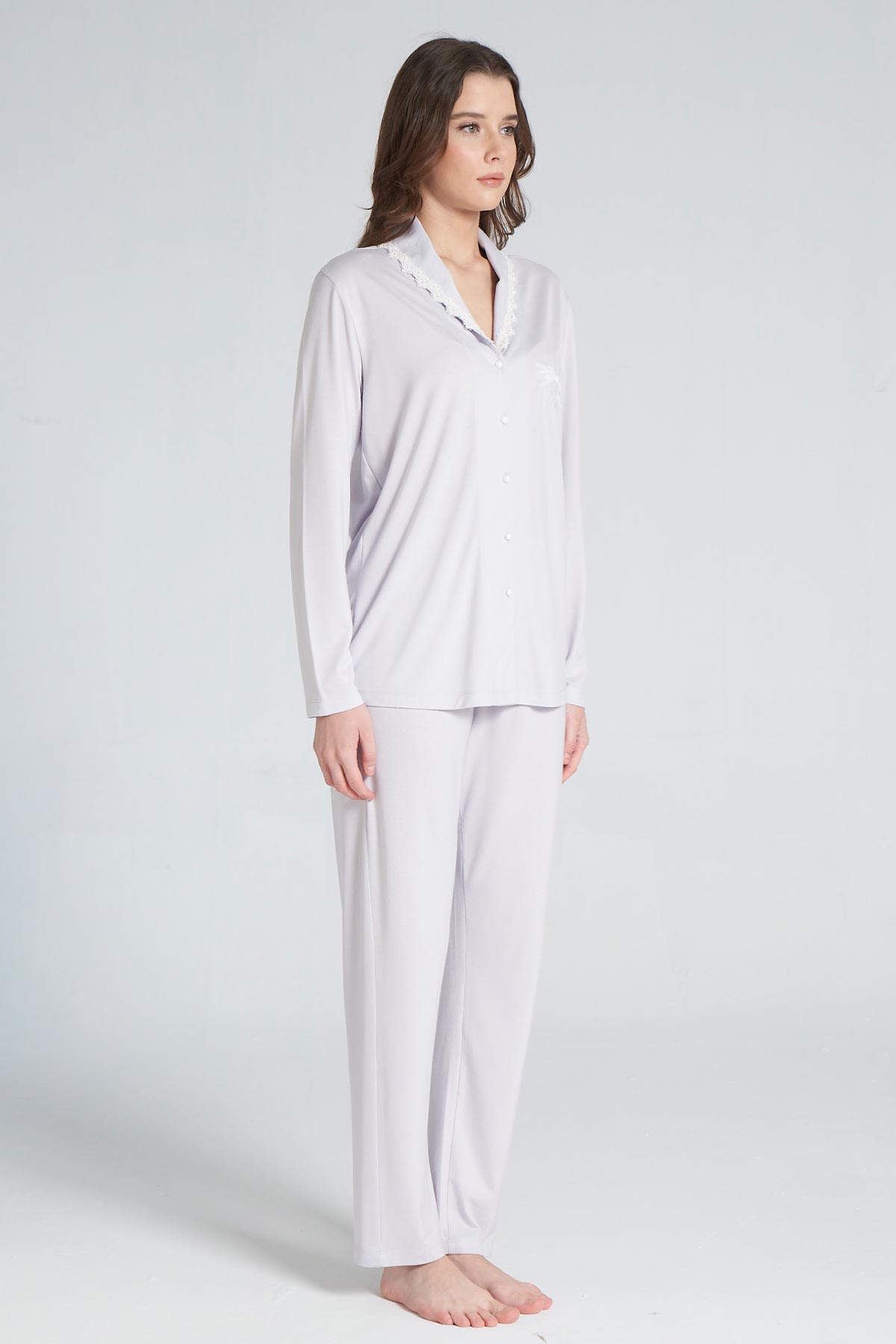 Pınarca Kadın Pijama Takımı Uzun Kollu Gömlek Yaka Pamuklu